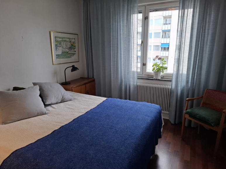 Lägenheten är belägen i Näsby Park, i ett lugnt område, endast 20 minuter med Roslagsbanan till Stockholms innerstad. I Näsby Park finns fina promenadvägar och havsbad. Lägenheten har ljust vardagsrum i söder med utgång till rymlig balkong. i söderläge. Kök med matplats för fyra personer, diskmaskin finns. Badrum med dusch och kombimaskin tvätt/torktumlare. Två sovrum med totalt tre sängplatser. Det ena sovrummet har ett stort skrivbord. I gemensamma utrymmen för Bostadsrättsföreningen finns tvättstuga, motionsrum och bastu. Dessutom finns en fin innergård med lekplats, utemöbler och grill.