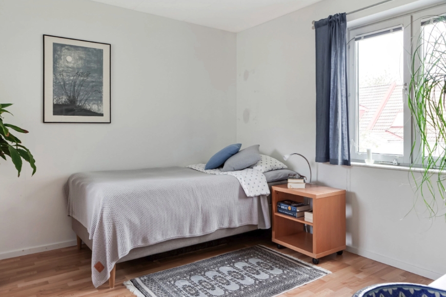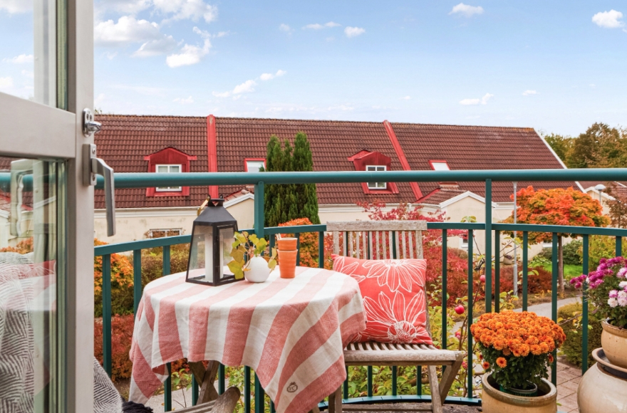 Stor, ljus 3a i grönt och lugnt låghus-område. Lägenhetens ingång är i markplan, till en stor hall med förvaringsmöjligheter. En trappa upp öppnar sig lägenhetsytan med rymd och ljus. Vardagsrum och matplats ligger i öppen planlösning. Köket ansluter till matplatsen där även utgången till balkongen finns. Golvvärme genom hela bostaden. Balkongen har söderläge och är utrustad med markis. Ena sovrummet har fönster mot norr, det andra har fönster mot öster resp väster. Lägenheten har fönster i alla väderstreck. Badrummet är rymligt med toalett, handfat med skåp, badkar med dusch, tvättmaskin och lång arbetsbänk med ett över- och ett underskåp. Över badkaret finns en torkställning som hissas upp och ned. Inne i lägenheten finns en klädkammare och i ett angränsande hus ett sedvanligt nätförråd. Läget är idealiskt i ett lugnt, uppvuxet område i direkt anslutning till en expansiv, nybyggd stadsdel - Brunnshög - med utmärkta kommunikationer, affärer, restauranger, apotek och snart vårdcentral, mm. Spårvagnen och flera busslinjer är 5 minuters promenad bort vilket gör att man når Lund C på mindre än 15 min. Ideon, Max IV och ESS ligger alla i närområdet. Föreningen är välskött.