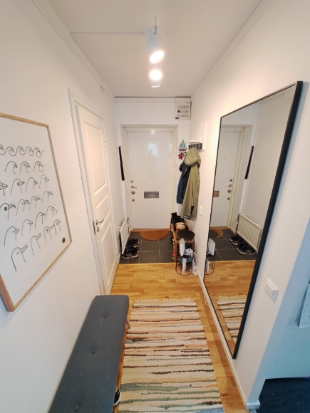 We are renting out our apartment in Orminge while we live in Norway. This is a cozy functional apartment. The apartment is available until April 2026, with possibility of extension. The apartment has a modern kitchen with a dining table and four chairs, oven, microwave, kitchen sink, refrigerator, and freezer. In the living room there is a comfortable sofa and table, and plenty of natural light. The bathroom has a toilet, shower, washing machine and dryer, as well as storage space. There is also a walk-in closet in the apartment with plenty of storage space for clothes and belongings. In the bedroom there is a double bed. The balcony has decent sunlight conditions, and has room for both outdoor furniture and flowers/plants if you want to make it a bit extra cozy.