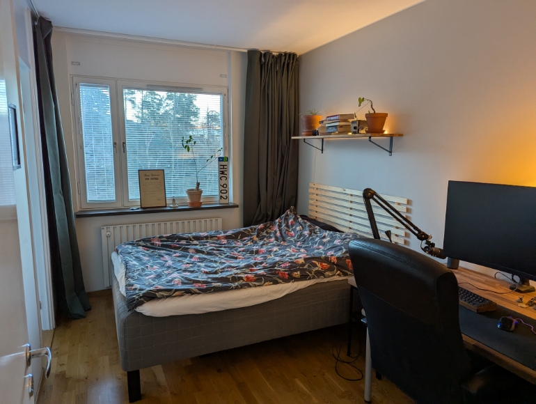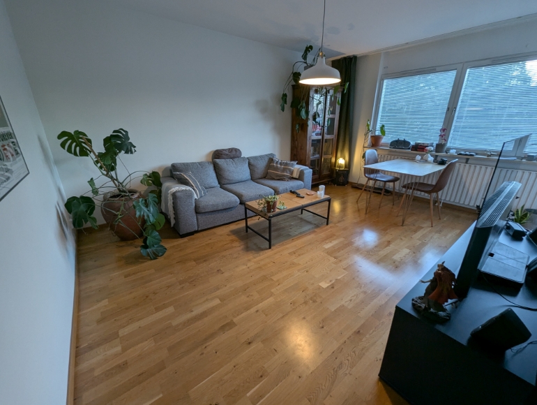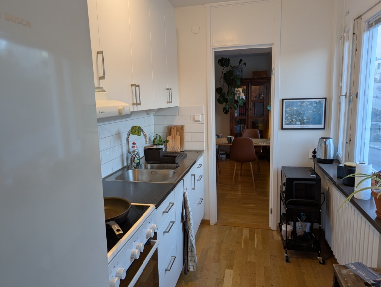 Fräsch och mysig tvåa i lugna Älta, nära både natur och stan Jag hyr ut min fina tvåa på 47 kvm, belägen på andra våningen (hiss finns) i ett tyst och skönt område med naturen runt knuten. Lägenheten är ljus med fönster i östläge och får in massor av härligt morgonljus. Vardagsrummet är stort och luftigt, sovrummet har gott om förvaring med stora garderober, och i hallen finns dessutom en praktisk klädkammare. Köket är lite mindre men fräscht, med fina vitvaror och gott om skåpförvaring. Badrummet är rymligt med badkar. Det är verkligen ett lugnt hus med trevliga grannar. Utanför porten ligger en liten innergård med grillplats och lekplats, och i huset finns både cykelrum, tvättstuga. Området är perfekt för dig som gillar naturen – du har Ältasjön 5 minuter bort och Flatenbadet når du på 10 minuters promenad. Ändå är det smidigt att ta sig in till stan: bussen går precis utanför (1 minut från porten) och du är i Slussen eller Gullmarsplan på runt 20 minuter.
