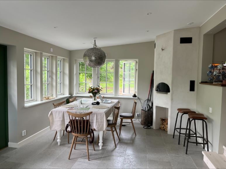 Mysig enplansvilla med fantastisk sjöutsikt precis intill skog och promenadområden i området Gorås i populära Lerum. Vi hyr ut huset pga utlandsvistelse och letar nu en skötsam hyresgäst som vill bo här medans vi är iväg. Detta är det perfekta läget för den som älskar natur och stillhet men ändå vill ha närheten till en tätort. Huset är fullt möblerat och har tre sovrum, två vardagsrum och två toaletter/badrum (med badkar) vilket gör att det passar bra för både en barnfamilj eller ett par. Huset har en stor terrass med matplats, grill och sitthörna som är fantastisk att använda under sommarhalvåret. Bor du här behöver du bil eftersom det INTE finns någon kollektivtrafik. Det tar ca 10 minuter att köra in till centrala Lerum, 15 minuter på cykel och ca 40 minuter att promenera. Från Lerum går det både pendeltåg och buss in till Göteborg varje timme. Obs både tomt och hus har vissa nivåskillnader så det är ej anpassat för rullstol. Huset är husdjurs fritt och vi tar ej emot större husdjur (hund, katt etc). Parkering för flera bilar, cyklar etc finns på tomten.