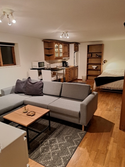 Täby brukar kallas för "staden på landet". Centralt men med naturen inpå knutarna. Central lägenhet (1:a) som ligger i naturskönt område intill Värtan. Långa härliga strandpromenader. Kanske gillar du löpning? Nära till bad precis nedanför villan och friluftsliv. Går även att spela beachboll och hyra kanoter. Gångavstånd till bussar, och Roslagsbanan, stationerna Näsby park eller Viggbyholms station. Gångavstånd till restaurang Pont som ligger i Hägernäs viken. Buss 617 tar dig från Drakskeppsvägen till bl a Täby Centrum. Ja, möjligheterna är många. Ligger i ett lugnt och trevligt villaområde. Parkering ingår för normalstor personbil. Plats för cykel eller moppe finns i garaget. Se mer info i fotorutorna. Ej husdjur och rökfri. Lägenheten är till för en person i första hand. (Ej barn).