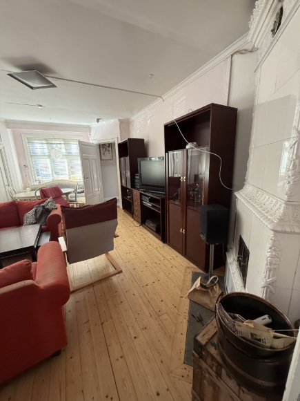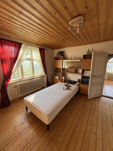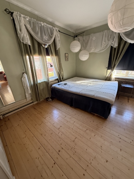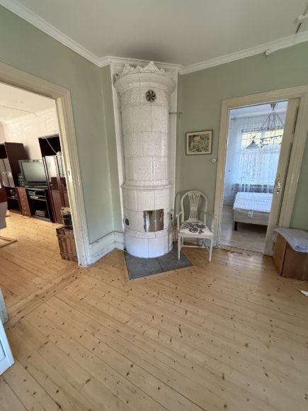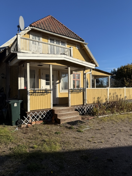 Charmigt sekelskifteshus med fyra kakelugnar. Tvättstuga, bastu, toalett och dusch i annex. Dusch och toalett finns i huvudbyggnaden. Stor altan med tak. tre rum på övervåning och tre rum och kök på nedervåning.