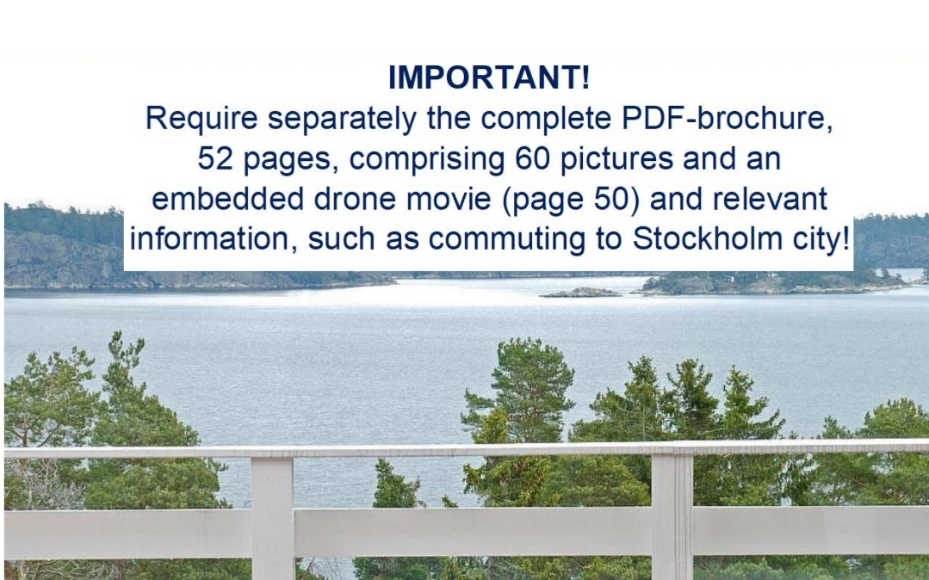BREATHTAKING SEA VIEW - ESTATE WITH 180 DEGREES SEA VIEW - WITH YOUR OWN JETTY AND BUOY ... Mark my Words: sea view doesn´t get any better than this ... Counting 20 points (1 - 20) that captures this long term lease: ( 1. ) IMPORTANT! Require complete PDF-broschure with 60 pictures and relevant information, including the conditions for the lease. There is also a fantastic drone movie (link) of the estate, that is embeded in the PDF broschure. ( 2. ) STOCKHOLM, Tyresö, 105 sqm main building. Fully furnished house. 2 bedrooms, 1 office (bed)room, 1 large living room, 1 room with open fireplace and 1 separate dinning room. ( 3. ) THE HOUSE FLOOR PLAN offer a seamless sense of flow between the social areas: the large living room (27 sqm), kitchen area, room with open fire place and dining room, with the kitchen serving as the social hub. To summarize: a very Scandinavian planning and interior which brings in the light. ( 4. )THE OPEN PLANNING, single floor with etage planning and fantastic light, gives a sense of that the house is bigger than it really is. Once again: typical Scandinavian planning at it´s best. ( 5. ) NEW KITCHEN INSTALLED 2023. Very Scandinavian interior and planning, with light and bright pigment. ( 6. ) 25 METERS TO PRIVATE JETTY with boating and swimming. Private buoy just outside the jetty with possibility to have a bigger boat (38 fot) at anchor. ( 7. ) FANTASTIC SURROUNDINGS with sea, forest and typical Swedish nature at it´s best. Do not be surprised if you see a sea or golden eagle high up in the sky near the house... ( 8. ) A VERY, SECLUDED PRIVATE ESTATE with a big plot natural plot 5600 sqm, whereof ca 500 sq m lawn, yet located only 25 minutes away from the inner city of Stockholm. Perfect public transport, with bus stop located only 50 meters from the entrance gates. ( 9. ) SPECIAL FEATURE of the house planning: spectacular sea view from all the rooms in the house, including the kitchen area. ( 10. ) CONDITIONS OF THE LEASE: Rental period: start from from 1 th of November 2025, and lease period at least 1 year and uptil 5 years. ( 11. ) Utliity costs: heating and household electricity consumes ca 16 000 kWh per year, corresponding to ca 2.500 SEK/month. This is based on present tenant full year, permanent living with 2 adults and 2 small children, where 1 parent stays at home with chiildren, along with the fact that the working parent works a lot from home (remote work). Sanitation and garbage fees is on average 1.200 SEK /month ( 12. ) Furnishing: Flexible ( 13. ) Household size: the house will preferably fit best a family with max 3-4 members (preferably a family unit) ( 14. ) References required! ( 15. ) A solidity controla and background check (or something similar) will be done before signing the lease agreement. ( 16. ) Viewing of the house: by agreement! We can arrange viewing very flexible. ( 17. ) Smooth commuting during rush hours, with a bus stop located just 50 meters from the villa’s entrance gates. A direct bus to the subway hub Gullmarsplan, next to the inner-city district of Södermalm, takes only 39 minutes, according to official time table. From Gullmarsplan, a subway ride to Stockholm Central Station takes a further 9 minutes (official time table), making the total commuting time from the house to Stockholm Central Station and the inner city just ca 48 minutes. ( 18. ) SUMMARIZE - CONDITIONS OF THE LEASE => Rental period: starts from 1th of November 2025 and to last preferably last at least 1 year and uptil 5 years, or longer. ( 19. ) Rent is of course, according to practice, excluding heating, household electricity and sanitation. ( 20. ) INTERESTED...? REQUIRE a complete brochure (PDF) with 60 pictures, including embedded drone movie and relevant information for the lease to begin with. IMPORTANT NOTICE ! Samtrygg's "spontaneous" viewing schedule for booking a viewing does not work in practice. It means that we must agree on, through direct dialogue by phone/chat/mail, on a suitable time for viewing that suits both the current tenant, us as a landlord, and of course you as a future tenant! Hans-Erik