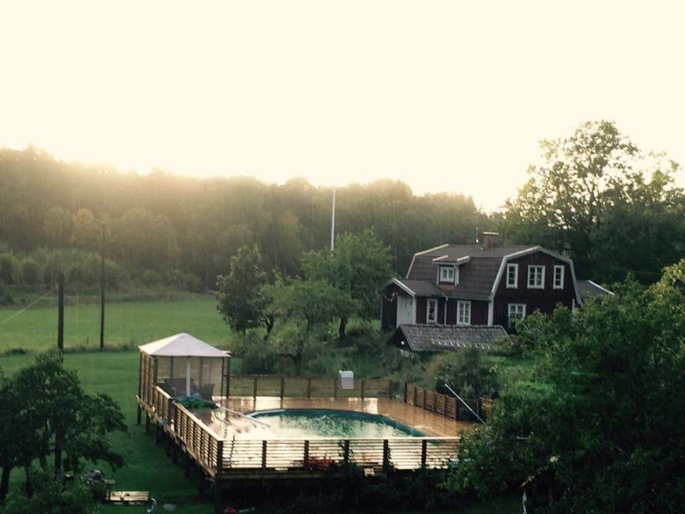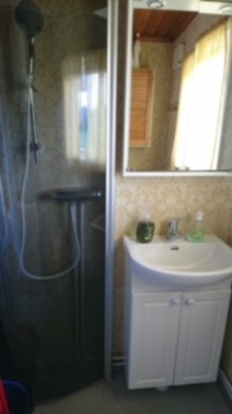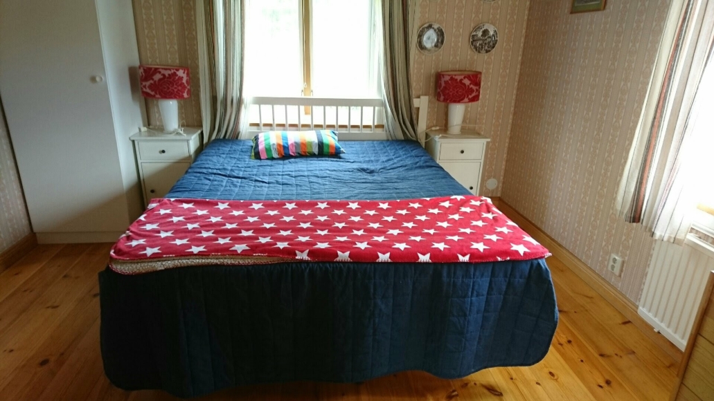 Gammeldags stuga på landet. 1 sovrum med dubbelsäng och 1 sovrum med 1 våningssäng samt 1 enkelsäng. Vardagsrum med 2 soffor, varav den ena en bäddsoffa. Allrum på övervåningen med soffa, 1 dagbädd för 2 personer samt en bäddfotölj.