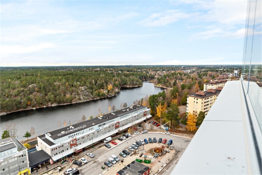 Modern och ljus gavellägenhet på Nynäsvägen 84 med fantastisk utsikt över sjön Rudan. Läget är mycket centralt – endast ca 100 meter till bussterminal, pendeltågsstation, Haninge Centrum, vårdcentral, apotek och tandvård. All service finns runt hörnet och naturreservatet Rudan ligger bara några minuter bort. En perfekt kombination av cityliv och natur, med allt inom räckhåll.