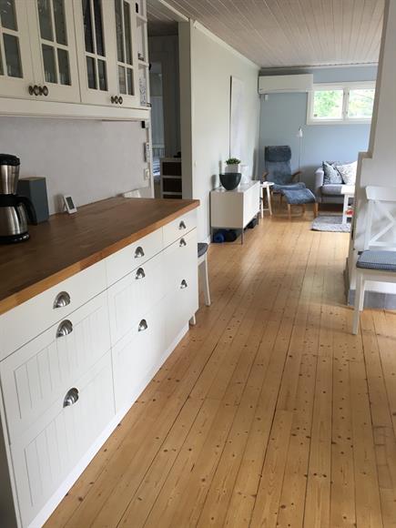 Charmigt fristående hus/villa 65 kvm/ 3 rum / 25 min bil från Slussen. Norra Ingarö strand är ett trevligt område ca 25 min med bil från Slussen, med både permanent och och fritidsboende. Det finns gott om badmöjligheter i området samt stora grönområden med utmärkta vandringsleder. Till närmaste busshållplats är det 700 meter och buss 430 tar dig till Slussen på ca 40 minuter. För den golfintresserade erbjuder Ingarö Golfklubb en 36-håls varierande skogs och parkbana. I Brunn och Fågelvik ett par km bort finns förskolor och skolor. Affär, bensinmack och en modern idrotts anläggning med konstgräsfotbollsplan och löparbanor. Fakta om huset Mycket nyligen renoverat 1-plans hus om 65 kvm med högt ogenerat läge i slutet av gatan. Huset har 3 rok (varav 2 sovrum), Ljusa färger, slipade furugolv, helkaklat badru, braskamin, stor solig altan runt huset och 2505 kvm lätt kuperad tomt. Parkering för minst två bilar finns i anslutning till huset. Vinterisolerad friggebod med värme på ca 8 kvm samt bastu finns i anslutning till huset. Möjlighet till båtplats finns Vatten: egen brunn avlopp: sluten tank 3 kubik Uppvärmning: el Luftvärmepump + braskamin (Ca 665,5 kwh snitt per månad) Planlösning: Hall Välkomnande hall med ljus tapet , grått klinkergolv ( golvvärme) klädhängare och skoförvaring. Badrum Helkaklat badrum med vita väggar och ljust klinkergolv (golvvärme), duschhörna, wc, tvättställ, handdukstork, tvättmaskin och torktumlare. Sovrum 1 Sovrum med slipat trägolv, ljus tapet, möblerat med dubbelsäng, sängbord med förvaring och byrå med förvaringsmöjlighet. Vardagsrum Vardagsrummet har braskamin, Stora fönster slipat trägolv och är målat i ljusa färger. För att spara på energi bidra till ett skönare inomhusklimat har en luftvärmepump installerats i vardagsrummet. Kök Köksdelen har en stormatplats för 6-8 personer, och utgång mot altanen. Köket har modernt snitt och är målat i ljuskulör med ljusa luckor och massiv bänkskiva i ek. Köket är utrustat med induktionshäll. Fläkt, diskmaskin, inbyggnads ugn och micro, en helt ny större kyl/frys installerades nyligen. Sovrum 2 I anslutning till köket ligger ett till sovrum med målat i ljusa färger med slipat trägolv våningssäng, och en garderobsvägg med hela 5 garderober. Friggebod I anslutning till huvudbyggnaden finns en vinterbonad isolerad friggebod med värme element på 8 kvm, Friggeboden har ljusa isolerade träväggar, slipat isolerat trägolv, 2 st öppningsbara fönster och glasdörr. Friggeboden är möblerad med utdragbar bäddsoffa som lätt görs till en dubbelsäng. Bastu och Jacuzzi ingår!