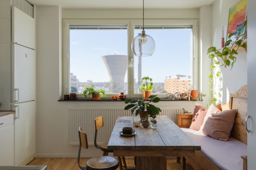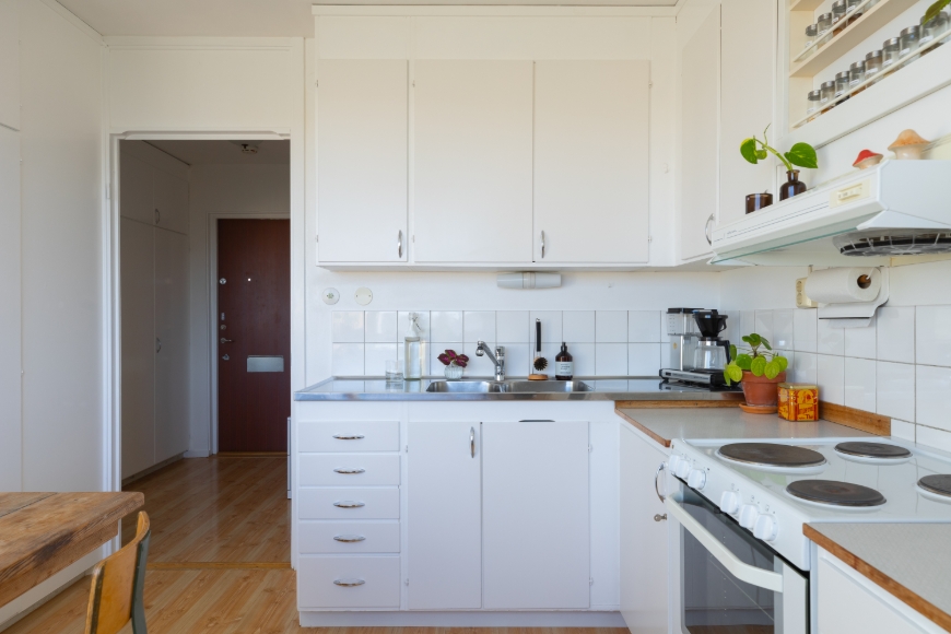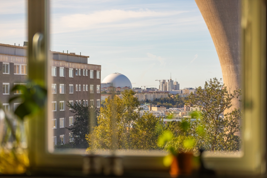 Trevlig etta med separat kök, väldigt fint ljusinsläpp på 6:e våningen. Stor säng & en soffa som man bäddar ut till en bekväm extra säng vid behov. Projektor med duk finns som man kopplar via HDMI. Två bussar utanför porten som tar dig till Södermalm på 5 minuter.
