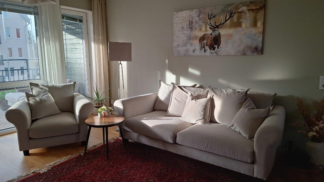 En mysig lägenhet (2 sovrum och kök på 78 m²) i ett mycket fint och lugnt område i Steninge, Märsta. Lägenheten har en öppen planlösning mellan vardagsrum, matsal och kök, vilket kompletterar en vacker ekparkett med golvvärme som ger en behaglig och varm känsla under de kalla månaderna. Lägenheten öppnar sig med fönster i två väderstreck, vilket skapar både ljus och rymd. Det stilrena köket har vita skåplockor och fronter, bra arbetsytor och en generös köksö. Det är utrustat med rostfria vitvaror från Electrolux. Köket är välplanerat med gott om arbetsutrymme och förvaring i både skåp och lådor. Från vardagsrummet när man en stor, breddad och inglasad balkong på ca 12 m² i söderläge. Den har ett praktiskt förråd på ca 2,3 m² för smidig förvaring av utemöbler och tillbehör, samt ett vackert välskött trägolv. Det finns två rymliga sovrum med förvaring, och i hallen finns en walk-in closet samt plats för avhängning av ytterkläder och skor intill entrén. Badrummet, som nås via den främre hallen, har en modern och rofylld känsla. Det är utrustat med en praktisk arbetsbänk med tvättmaskin och torktumlare samt överskåp. Här finns även en kommod med två lådor för förvaring, ett spegelskåp med snygg belysning och en dusch med vikbara glasväggar. En unik chans att bo mitt i ett naturskönt område nära badplatser vid vackra Mälaren. Här bor du cirka 10 minuter från Arlanda flygplats, 30 minuter från Stockholm city och 30 minuter från Uppsala med bil, vilket gör det väldigt enkelt och smidigt för både nationella och internationella resor. Busshållplatsen ligger 50 meter från bostaden och tar dig direkt till tågstationen för pendeltåg och bussterminal. Steninge slott ligger cirka 100 meter från fastigheten, I området finns även kulturhistoriska Steninge Bruk som inrymmer restaurang och inredningsbutik i rustika, gamla lokaler. Här bor du i ett lugnt naturområde med kulturhistoriska anor, samtidigt som du har strategisk närhet till kollektivtrafik som tar dig till storstadens puls och shopping. ------------