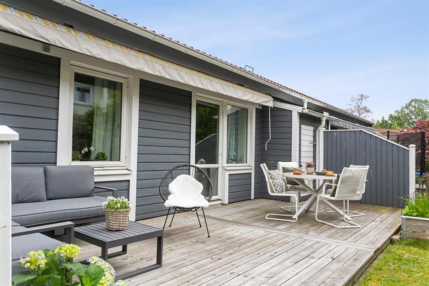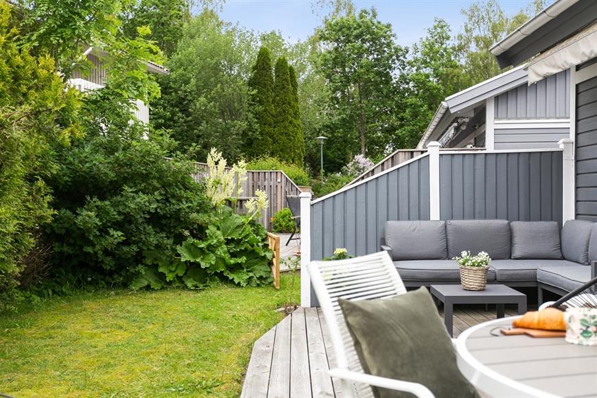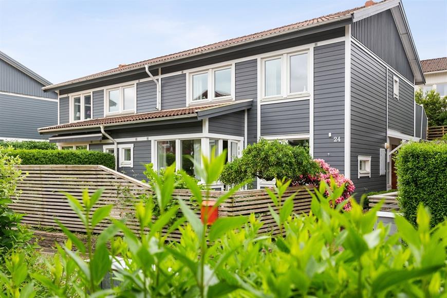 Fint och lugnt beläget parhus i två plan om totalt 117 kvm. Två soliga altaner, öppen planlösning mellan kök och vardagsrum. Området erbjuder barnvänliga och bilfria innergårdar med garage i separata längor. Här bor man med närhet till naturen med flera motionsspår då området angränsar till Sandsjöbacka naturreservat. Promenadavstånd till olika sjöar. Flera skolor i närheten och bussar tar dig snabbt till centrum. Golfbanor finns nära inpå. Entré- rymlig hall med gott om plats för förvaring. Modernt kök med öppen planlösning mot vardagsrummet. Ljusa väggar och ekparkett. Härifrån nås altanen på framsidan Entréplanet rymmer även ett helkaklat badrum med dusch och en rejäl, praktisk tvättstuga. Här finns ett Kontor/förråd/sovrum Ett öppet allrum På plan 2 här finns tre väl tilltagna sovrum och ett allrum. Ett badrum med badkar. Här finns en trevlig träaltan som är den perfekta platsen för lugna sommarkvällar med familj och vänner. Här finns även en välskött gräsmatta. Uteplats/Balkong Två altaner i soligt läge
