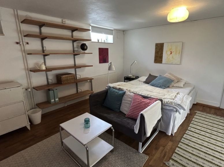 Trevligt möblerad stor etta med egen ingång i villa och tillgång till trädgård. Egen toalett och dusch i tvättstuga, som delas med hyresvärden.